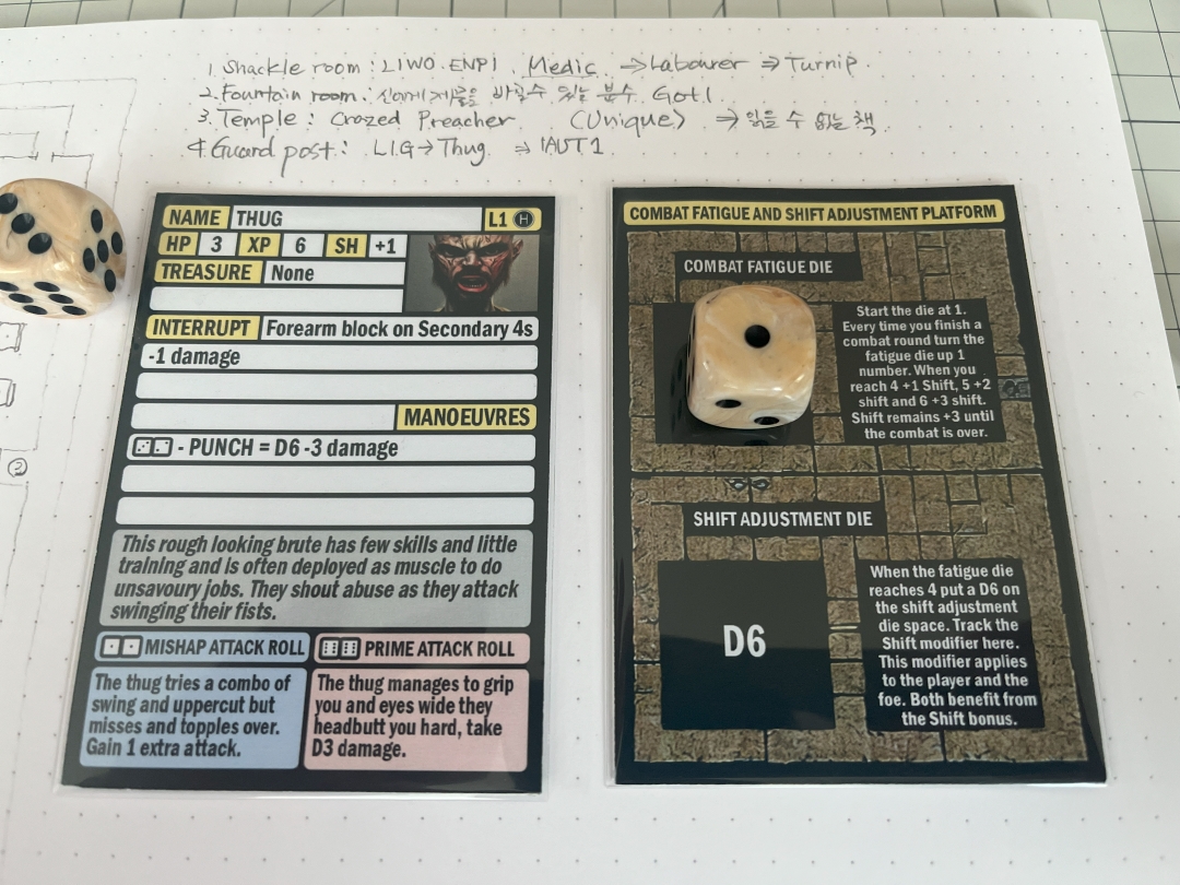 솔로 던전-크롤러 (Solo Dungeon-Crawler) 게임 2d6 던전 (2d6 dungeon) 의 플레이 모습들.