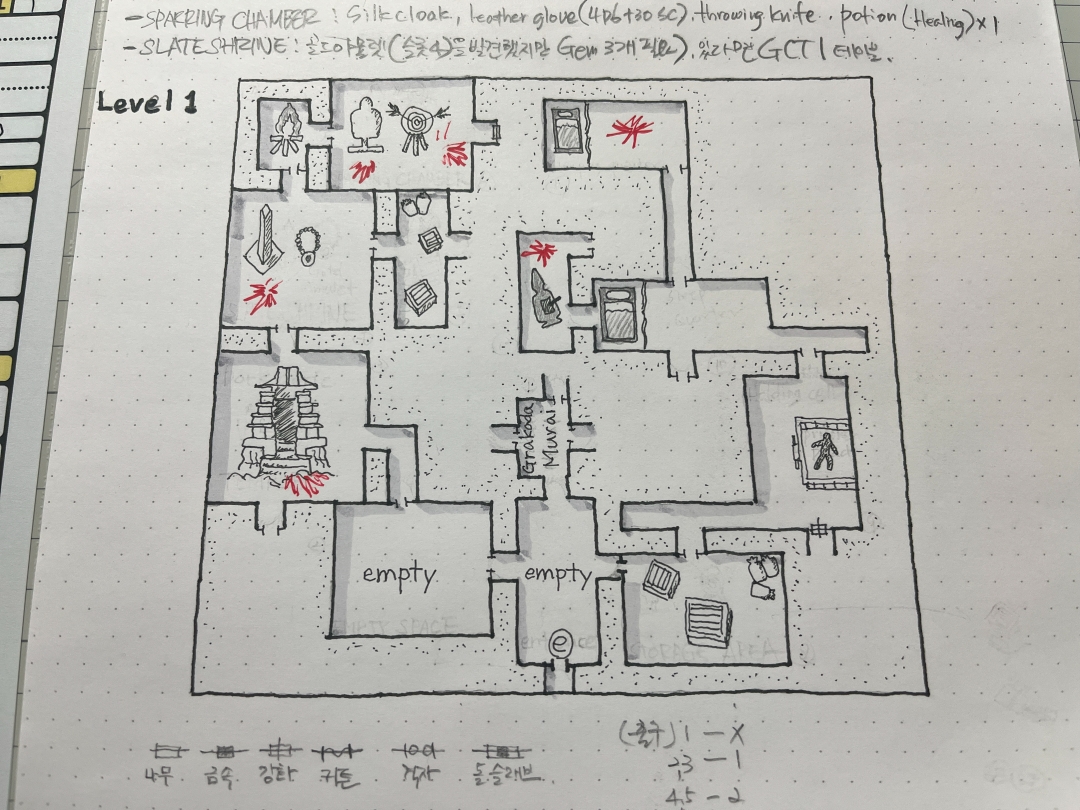 마지막 방에서 블랙스미스에게 패배하여 1레벨 던전 실패